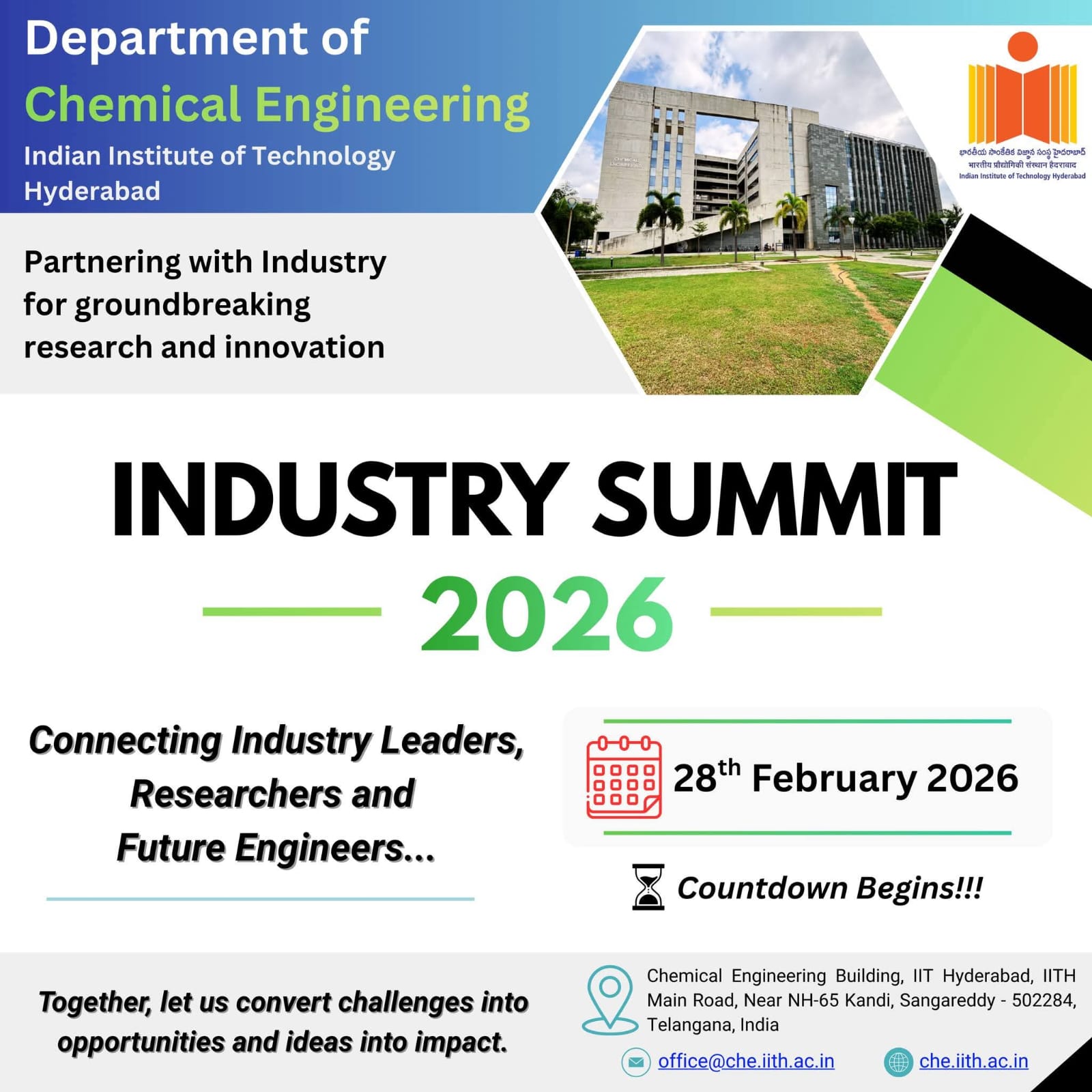 At the Department of Chemical Engineering @ IITH, we prepare the next generation of chemical engineers who can solve today's socio-technical problems.