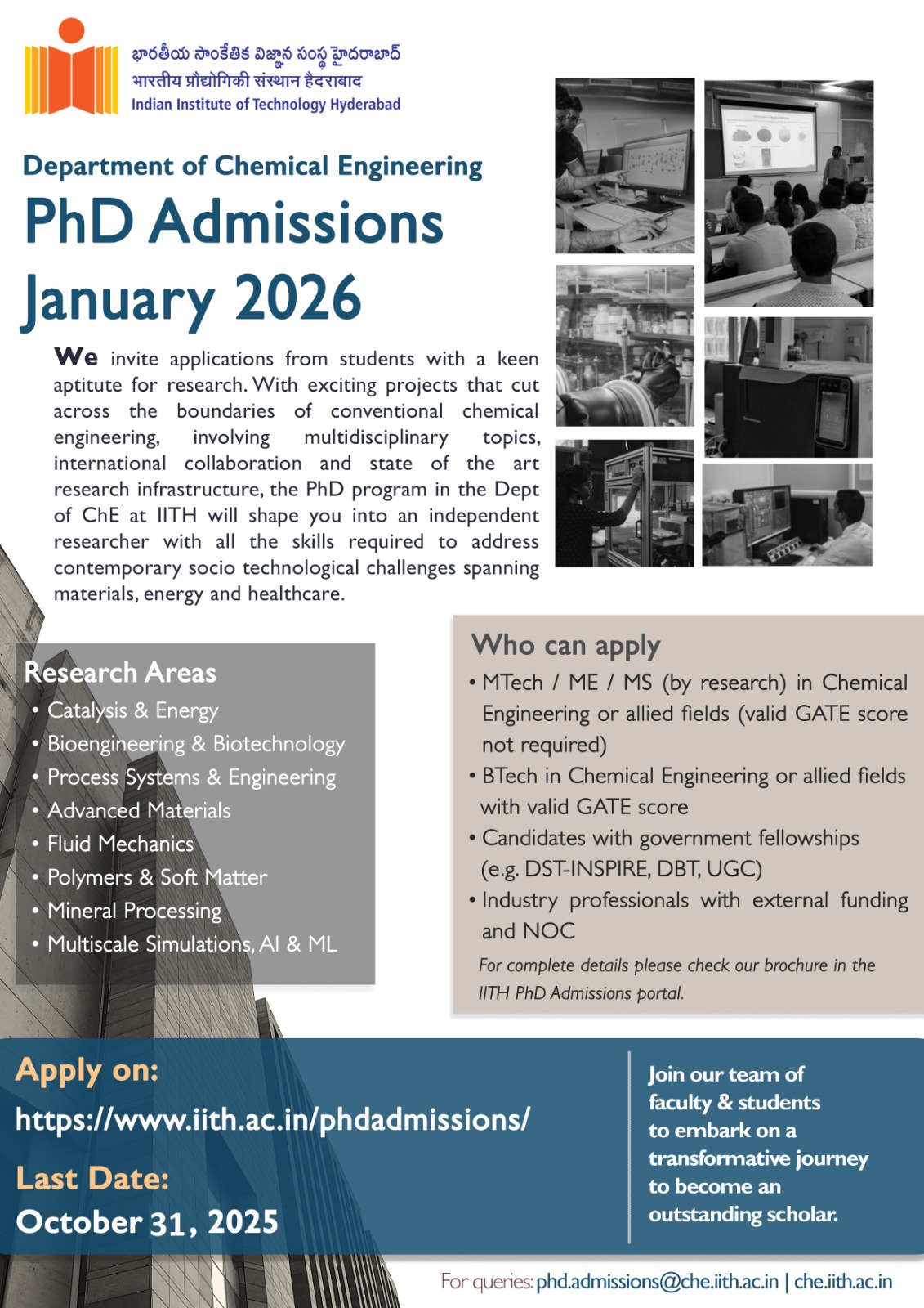 For any queries related to faculty position please contact the faculty search committee: fsc[at]che.iith.ac.in
